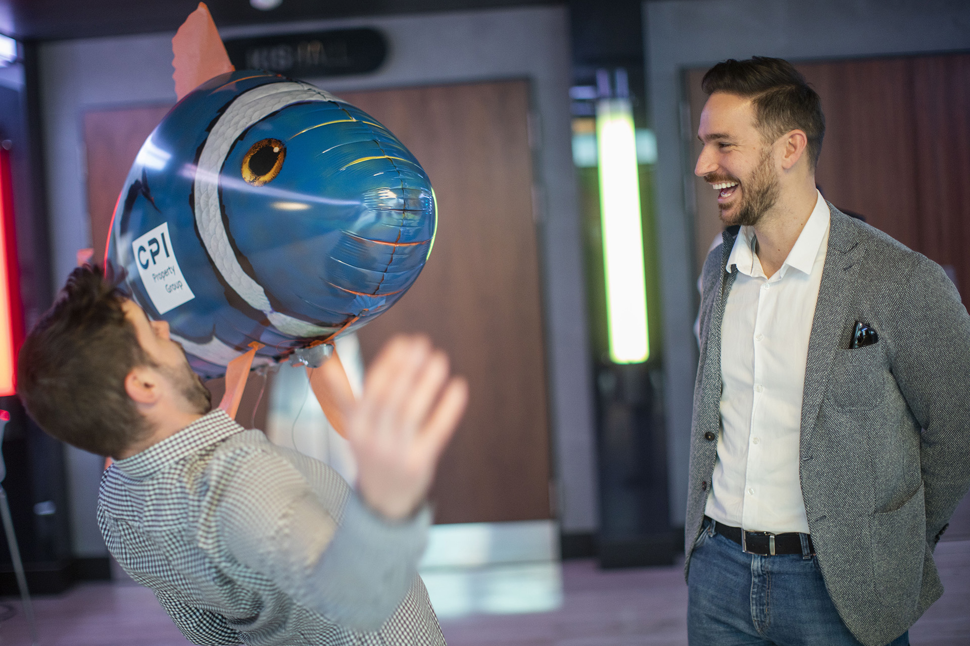 A CPI Hungary fő támogatóként okkal várta el tőlünk, hogy vizuális megjelenéseit ne rollup-okkal és pop-up standokkal sumákoljuk el. Így hát kaptak tőlünk egy valódi fából készült interaktív falat, amin a Balance Hall megújuló energiaforrásait prezentálhatták ügyfeleiknek, egy fotópontot, ahol egy felhőkarcoló tetejéről készülhettek a nap legmenőbb selfie-jei, és mivel a rendezvény helyszíne az Akvárium Klub volt, nem hagyhattuk ki a CPI brandingelt repülő halat sem. Nem árulunk el titkot azzal, hogy a vendégek - és kollégáink is - az utóbbival szórakoztak a legjobban!